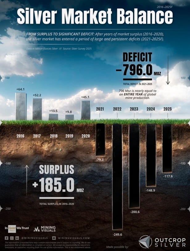 Silver is one of the clearest examples of a sustained structural deficit.