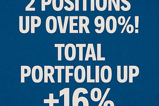 CC Club - 2 positions up over 90%! Total portfolio up +16%